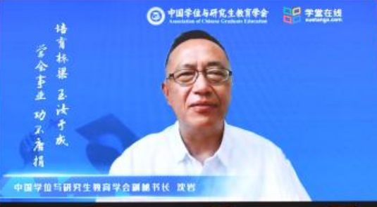 中国学位与研究生教育学会副秘书长沈岩进行了热情洋溢地致辞。他首先对我校积极开展“四有导师学院”在线研修项目予以肯定,并预祝我校2023年“四有导师学院”项目取得圆满成功。他希望我校全体研究生导师认真履行立德树人、服务需求、提高质量、追求卓越的重要职责,在新的历史起点,坚守“明德崇实”的校训,发扬“尚学致用、择善鼎新”的精神,在学位与研究生教育改革发展中取得育人和科研成果的双丰收。