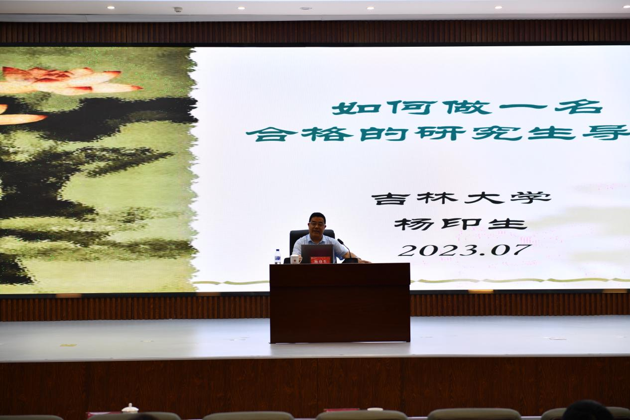 会议最后,吉林大学教授、博士生导师杨印生为大家做了题为《如何做一名合格的研究生导师》的讲座。杨教授从研究生在学期间应该做什么的底层逻辑出发,分析了研究生和导师“双主体”关系,重点讲解导师应该培养研究生什么,包括把好“五关”:选题关、理论框架关、数据关、模型关、文字关,发挥“五化”作用等方面。杨教授的报告使我校研究生导师深受启迪,获得一致好评。