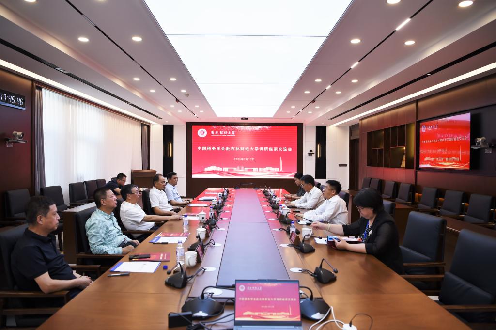 本网讯(税务学院 供稿)7月17日下午,中国税务学会一行来到我校开展调研活动。调研组一行参观了校史馆、百年财税思想史博物馆、吉商博物馆并召开了座谈交流会。中国税务学会会长、国家税务总局原副局长汪康,福建省人大常委会原副主任、福建省政协原副主席、厦门国家会计学院原院长、厦门大学原副校长邓力平,中国税务学会副会长兼秘书长蔡宇,中国税务学会副会长、中国税务出版社社长朱承斌,吉林省税务学会会长王华君,学校党委书记孙杰光,党委副书记、校长童猛出席座谈会。税务学院院长张巍,副院长董蕾参加了座谈会。座谈会由童猛主持。
