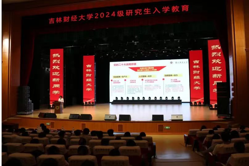 本网讯(研究生学院 供稿)9月12日上午,我校在多功能学术活动中心举行2024级研究生入学教育。学校副校长马秀颖以《吉财学子 研途启航》为主题为2024级研究生讲授入学教育第一课。学校党委研究生工作部部长赵彦双、yl6809永利院长卢相君、yl6809永利副院长许丹丹、2024级研究生辅导员老师以及全体2024级研究生参加了入学教育,入学教育由卢相君主持。