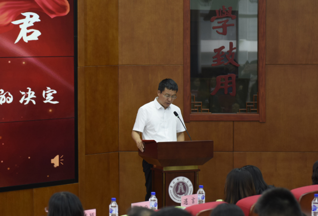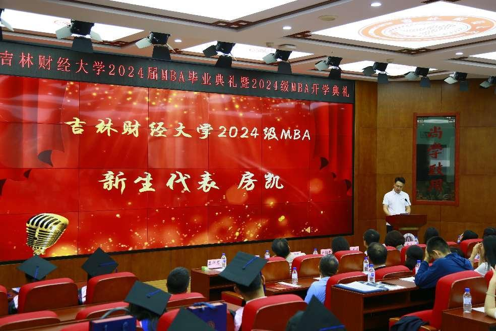 2024级新学员代表房凯向毕业学长送上了诚挚祝福,表示在MBA的求知道路上要牢记“明德崇实”校训,弘扬“唯真、唯志、唯行”学风,以严谨的态度突破自我,以更高的标准挑战自我,踔厉奋发,勇毅前行,立志成为洞悉管理智慧,厚积文化底蕴,胸怀安邦之志的高层次工商管理人才。