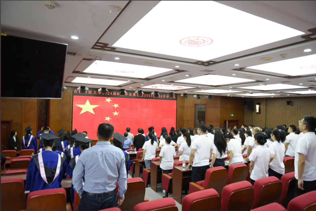 典礼在庄严的国歌声中拉开帷幕。马秀颖为典礼致辞,向MBA毕业学员送上了母校的殷切期盼和深深祝福,希望他们弘扬爱国情怀,坚持求学求知,持续奋发前行。同时,马秀颖向考入我校2024级MBA的新学员表达了热烈祝贺和深切期盼,希望他们慎思明辨,博学笃行,好学乐学,学有所成。