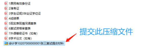 考生须将以上材料压缩成一个文件,命名为“报考专业名称+考生编号+考生姓名复试提交材料”。